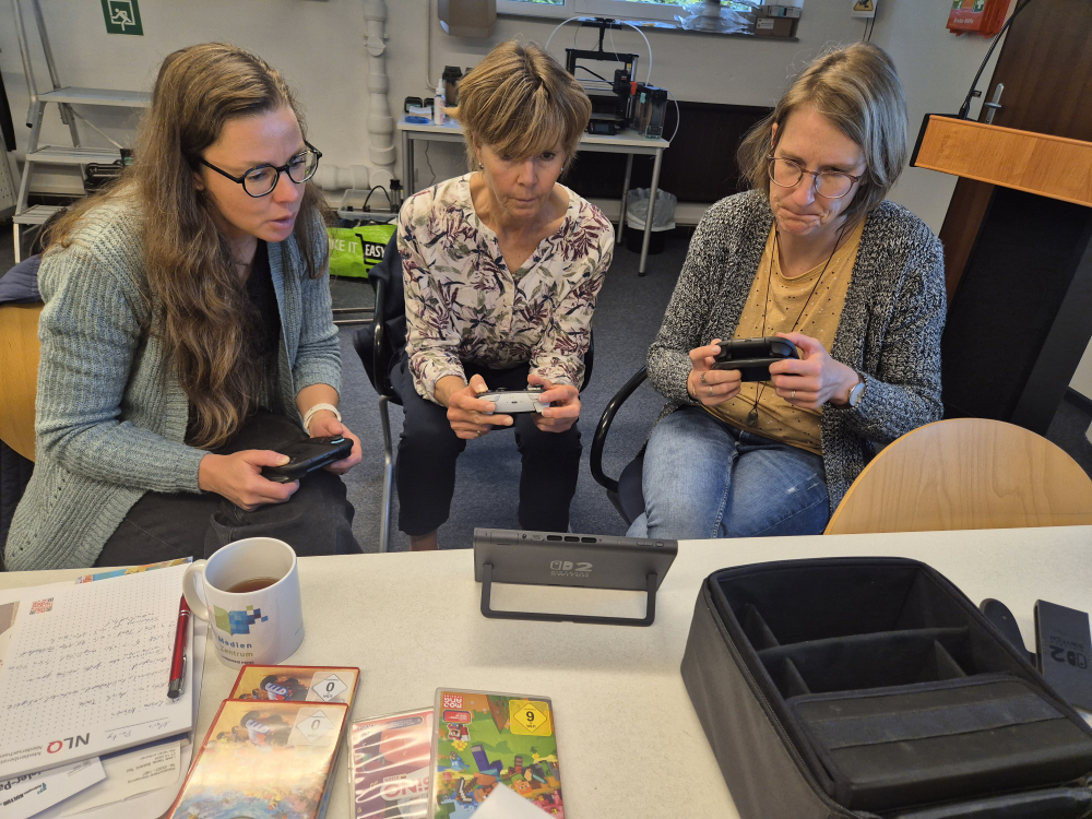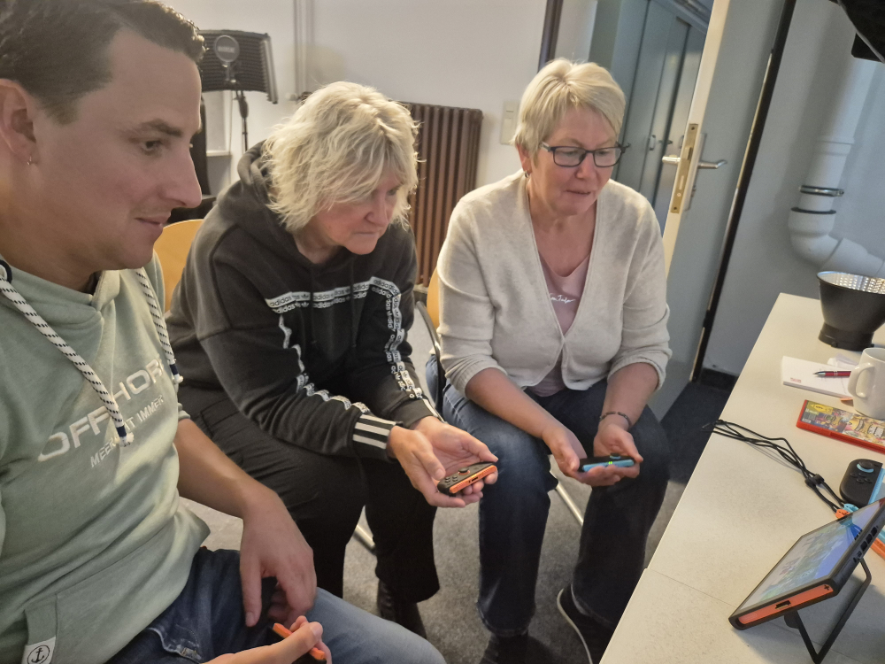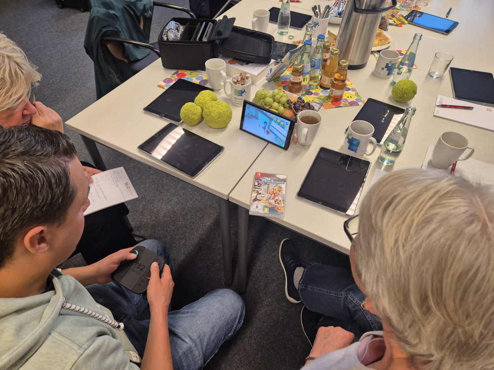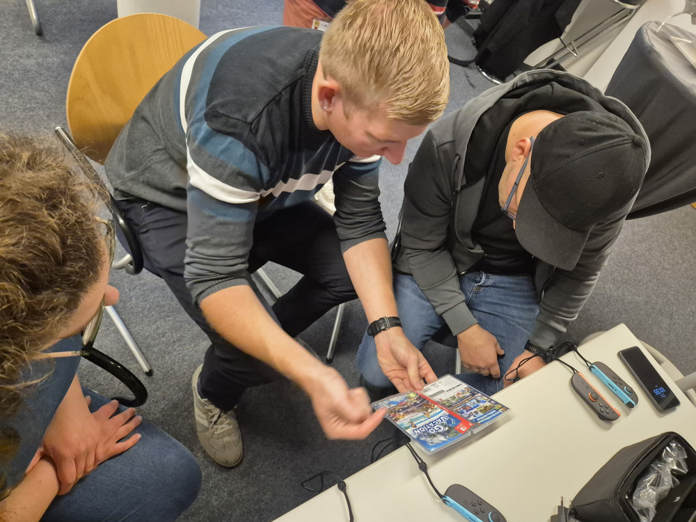 Tag 2 stand unter dem Motto „Spielen – spielen – spielen“. Die Teilnehmenden testeten in Kleingruppen verschiedene Switch-Spiele anhand klarer Leitfragen: Welche Anforderungen stellt das Spiel, ist es selbsterklärend, welche Spielertypen spricht es an (emotional, forschend, motorisch, ehrgeizig, selbstenwickelnd)? Ist es mehrspielertauglich, wie hoch ist der persönliche Spielspaß, welche Altersgruppe passt, wo treten Schwierigkeiten auf? Anschließend reflektierten die Gruppen: Welches Spiel hat mir besonders zugesagt, mit welchem konnte ich wenig anfangen, welcher Spielertyp bin ich selbst, was macht ein „gutes“ Spiel aus und was hat gefehlt? Wie helfen mir diese Erkenntnisse, um in der Bibliothek beraten zu können?