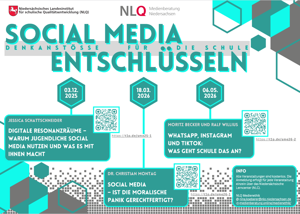 Veranstaltet wird die Fortbildungsreihe von der Medienethik im Fachbereich Medienbildung des Niedersächsischen Landesinstituts für schulische Qualitätsentwicklung (NLQ).