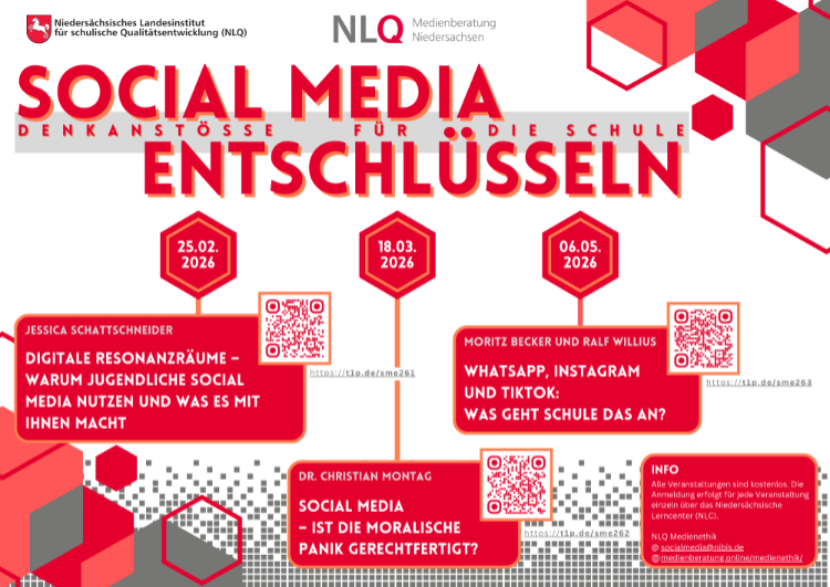 Veranstaltet wird die Fortbildungsreihe von der Medienethik im Fachbereich Medienbildung des Niedersächsischen Landesinstituts für schulische Qualitätsentwicklung (NLQ).