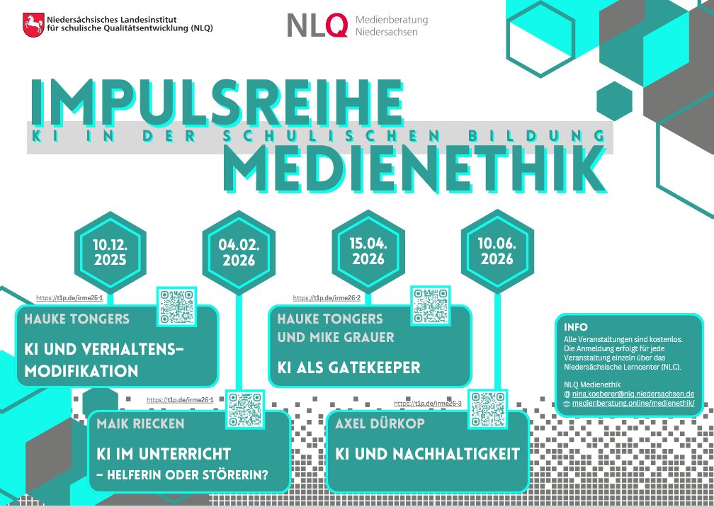 Veranstaltet wird die Fortbildungsreihe von der Medienethik im Fachbereich Medienbildung des Niedersächsischen Landesinstituts für schulische Qualitätsentwicklung (NLQ).